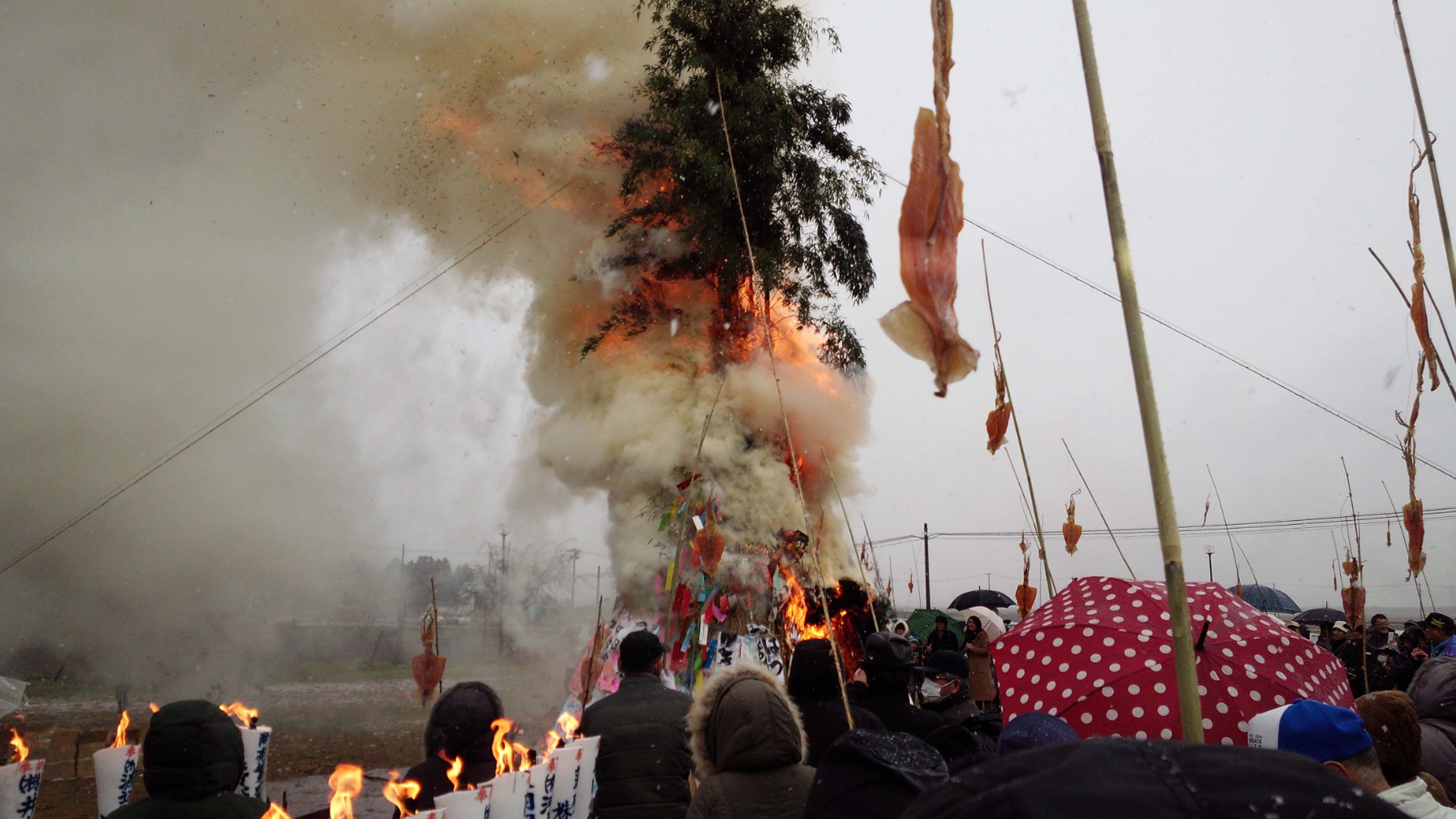 午後3時から分水地区『道の駅国上塞の神』に出席。国上寺ご住職の御祈祷の後、他の来賓と一緒に点火をしました。