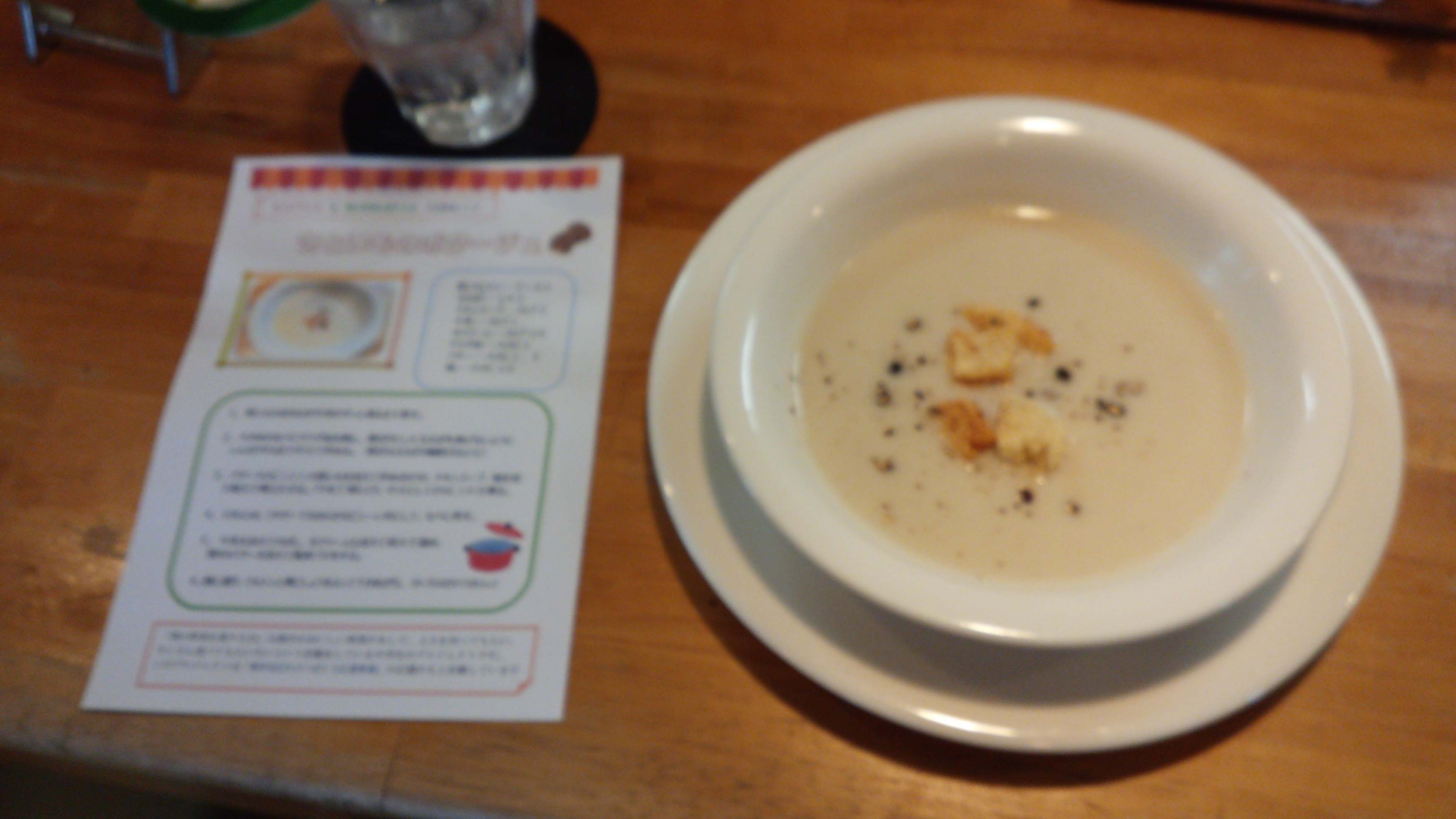 このポタージュスープは「燕の野菜を愛する会」という燕市の美味しい野菜をPRして、良さを知ってもらい、たくさん食べてもらいたいという活動をしている中学生のプロジェクトが、Kレストランと共同開発したレシピ料理で、里芋の主張もそんなに強く無く美味しかったです。