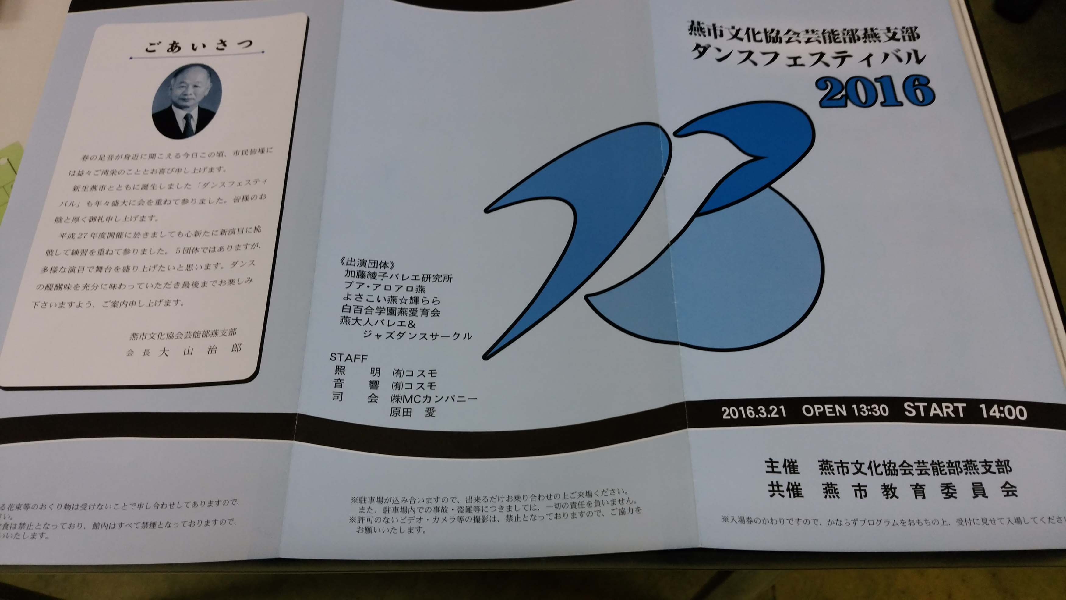 午後2時から燕市文化会館で開催された『燕市文化協会芸能部燕支部 ダンスフエステイバル 2016』に出席。
