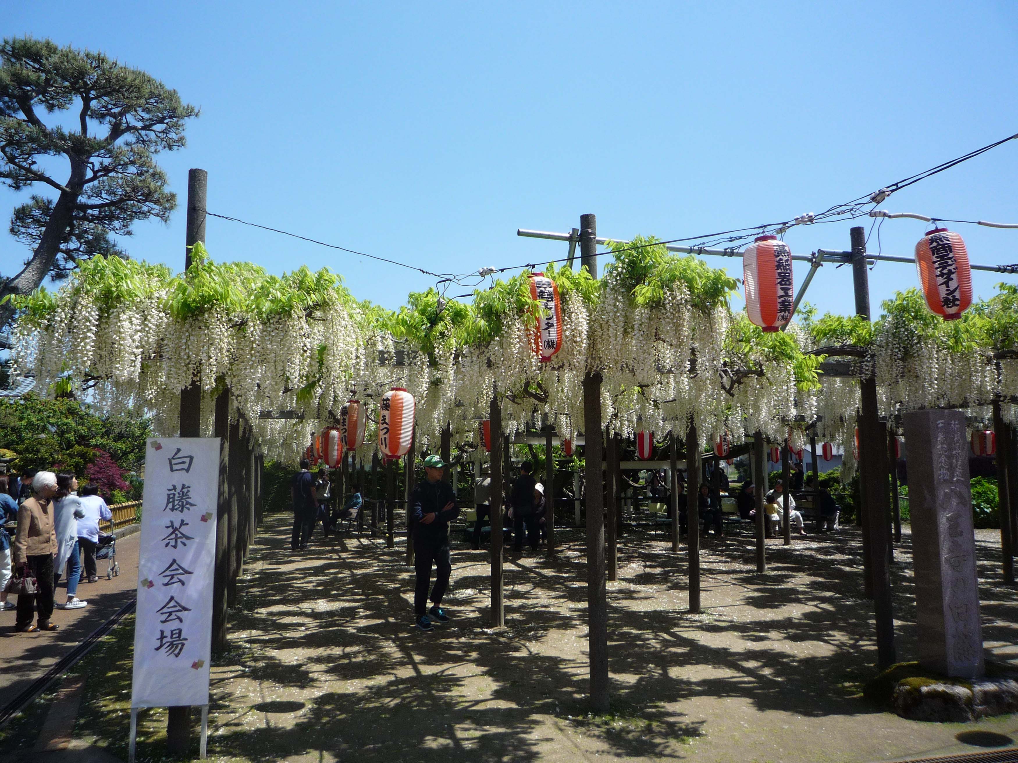 芸能発表会もそこそこに、県の天然記念物に指定されている「八王寺の白藤」で有名な、市内の「安了寺」で開催された『第40回白藤茶会』に出席。