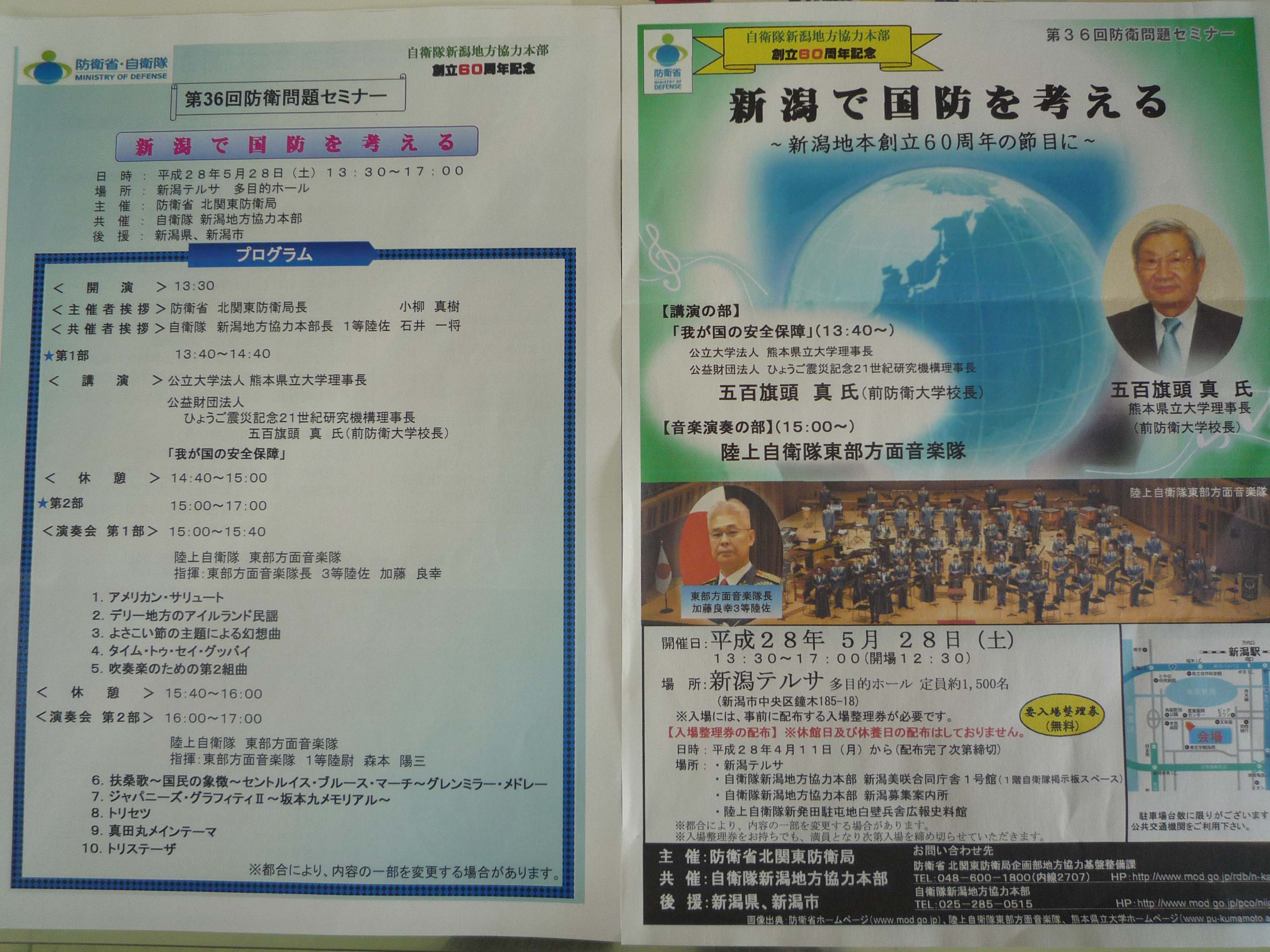 午後1時30分より、自衛隊新潟地方協力本部創立60周年を記念して、新潟テルサで開催された防衛省北関東防衛局主催の『第36回防衛問題セミナー』に出席。