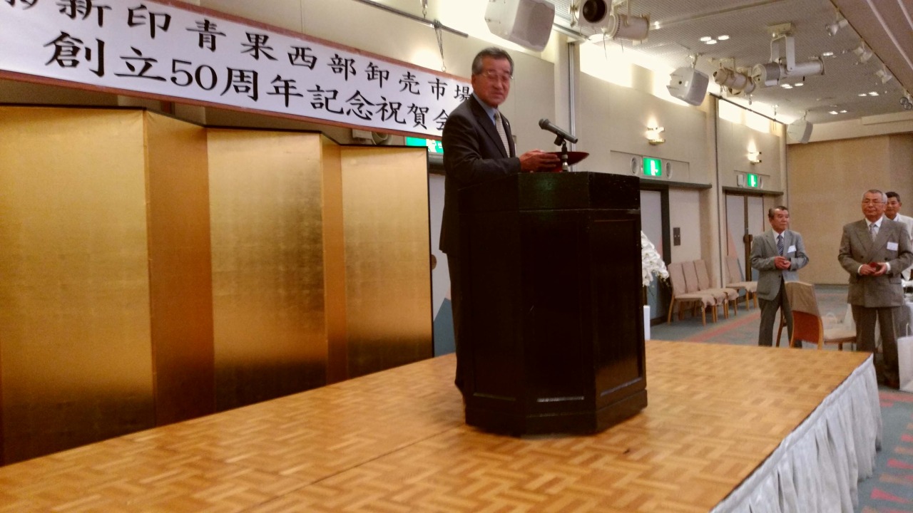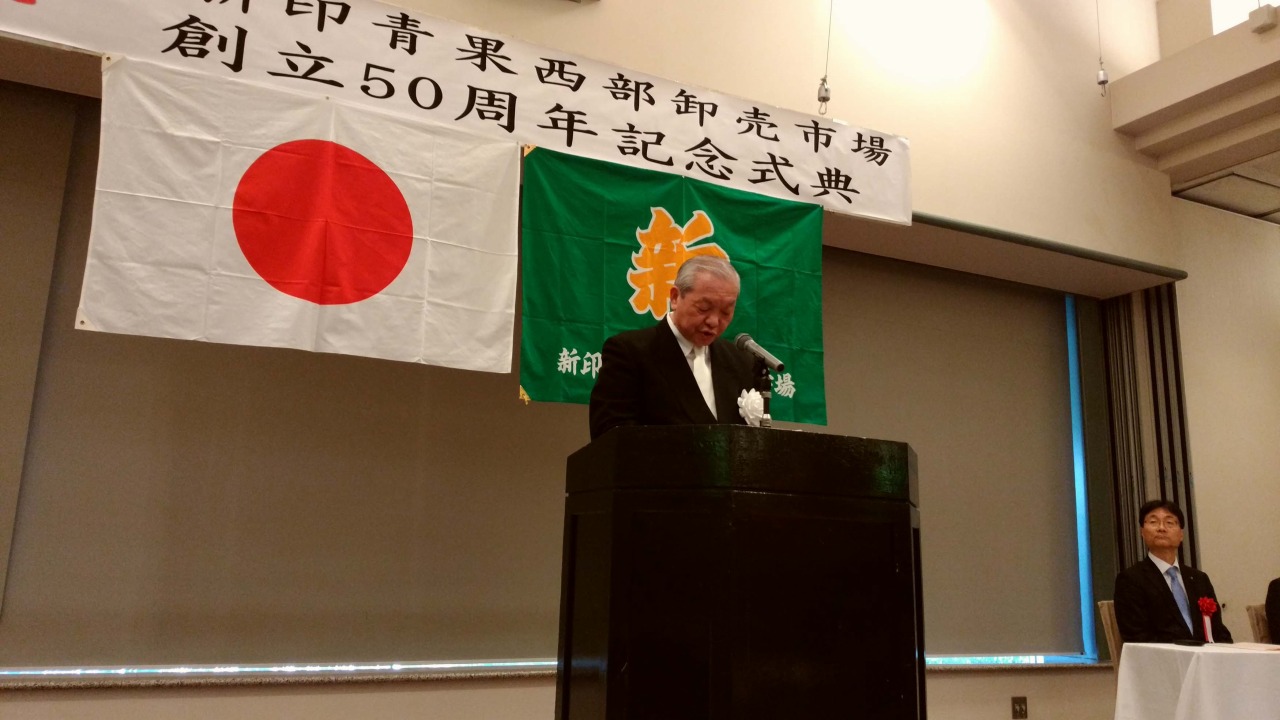 午後4時より『㈱新印青果西部卸売市場創立50周年記念式典・記念祝賀会』に出席。祝賀会は乾杯だけで失礼して次の会合へ。