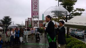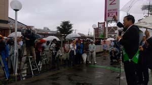 あいにくの雨の中でしたが、上の写真のように200名を超える大勢の方が応援に詰めかけ、鈴木燕市長・國定三条市長より激励の応援を頂き、森たみお候補が新潟県に対する熱い思いを強く訴え、皆さんから大きな期待が寄せられました。