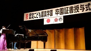 式終了後、同園音楽講師のピアノと知人のバイオリンによる、約10分ほどの卒園記念コンサートがありました。