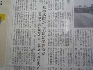 今朝の地元マスコミに、三条市が『県央基幹病院』開設予定地域に隣接して、区画整理事業の計画が示されたことに関連して、「基幹病院が須頃にできるが、燕市側からの幹線道路、集中雨で冠水、通行止めに」との見出しで記事になりました。