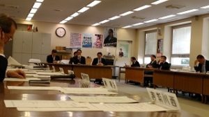 11時よりの党議の冒頭、議会事務局より政務活動費の収支報告について、交通政策局より日本海横断航路問題あり方検討委員会についてそれぞれ説明を聴取。