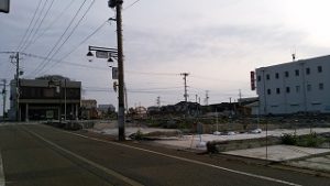 天気も良かったので朝食前に昨年の糸魚川大火の現場を視察。がれき処理はすべて終了し、新たなまちづくりにしっかりと進んでいることが分かりました。