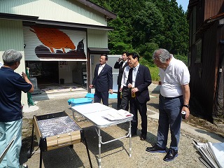 11時、旧柿崎町下牧集落における『イノシシ用電気柵集落設置優良事例』を視察。