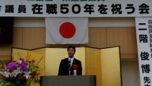 先生は西山町議会3期12年、県議会10期目途中の38年、計50年もの長きにわたり地方政治にご貢献頂いています。