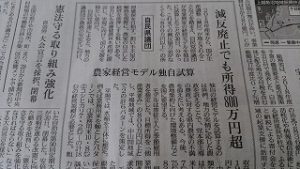 『減反廃止でも所得800万円超』との見出しの我が県連の農家経営モデル独自試算の農業提言が、地元紙の記事に掲載されたことで他のマスコミから複数の問い合わせがあり、反響の大きさに手応えを感じています。(ニンマリ)。