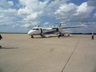 14時30分、新潟空港ボンバルデイアのプロペラ機で出発し、約1時間のフライトで成田空港の到着。