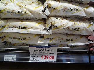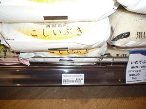 16時、市内スーパーの中でも日本食が充実している『MEIDI‐YA』にて、特に日本産のコメについて市場調査。北海道から熊本まで日本中の銘柄が揃っていると言っても良い程充実している中でも、本県産米は高価格を付けていました。