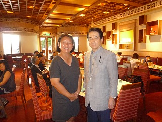 9時45分、『シャングリラホテル』においてチーフシェフの堰氏より、新潟県の酒や食材を通じてシンガポールで新潟をアピールする活動や、そのためのイベント開催などに対する熱い思いとそれへの協力依頼、またシンガポール人の日本や新潟の酒の陣への評価などについて意見交換しました。