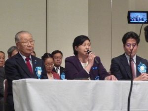 14時、台風18号接近で雨の中、東京で開催の『拉致国民大集会』に三富議連会長以下6名で参加。