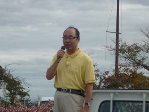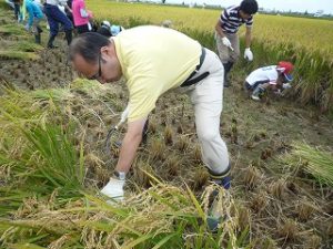 9時、『田んぼアート稲刈りイベント』に参加。解散総選挙必至という事で、細田代議士・鷲尾代議士目当てのマスコミ(テレビカメラ)が例年以上に来ていました。
