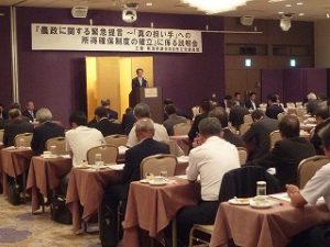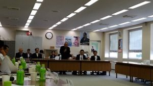 15時15分、市内のホテルを会場に県連版『真の担い手への所得確保策』緊急提言を、先ずは県内農業団体のリーダーや自治体の長や担当者への説明会を開催。
