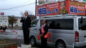 7時より桜町交差点での細田けんいち候補の朝立ちにお付き合い。