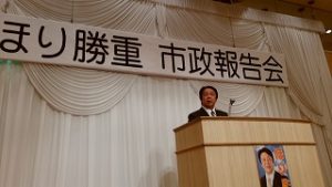 16時30分、燕三条ワシントンホテルで開催された『燕市議会議員堀勝重市政報告会』に出席し祝辞を述べました。