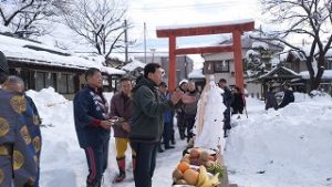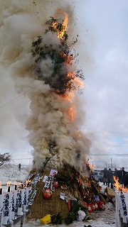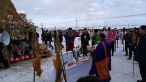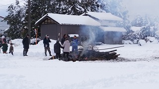 13時よりの星野宮司様の神事の後点火、恒例の名物の甘酒とタクアンを地域住民の多くの方と一緒に頂きました。