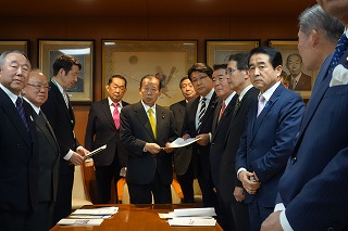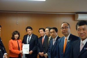 15時45分、二階幹事長には中国へのコメ輸出が東北大震災以降、本県を含め10県が輸入禁止措置となっているのに対して、新潟県が解除出来るよう政府与党としての力添えと、今冬における除雪費への補助を要望してきました。