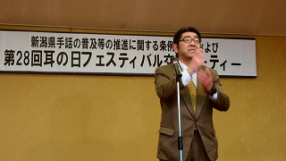 17時、咲花温泉で開催された新潟県聴覚障害者協会主催の『新潟県手話の普及等の推進に関する条例制定の祝賀会』に福祉保健部担当課長と一緒に出席。
