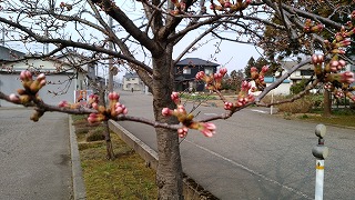 【春が来た】 事務所の桜も咲き始めました。これだと予想より1週間も早く、今週末が見頃を迎えます。