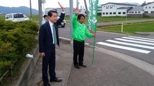 7時より8時まで、今回の知事選では市議会議員有志の皆さまが、自分たちの選挙でもしたことがないと仰る朝の辻立ちをして頂くなど、大変大きなご支援を頂きましたが、はなずみ英世氏当選のお礼の辻立ちをされると言うのに合わせて、細田代議士ともどもご一緒しました。