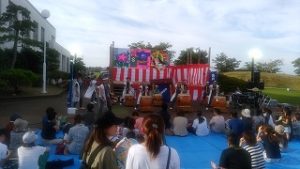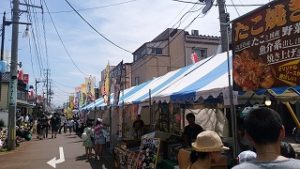 7時からのふれあい野菜市から2日目の祭りが始まり、10時からメーンストリートではフリーマーケットや屋台村・チビッ子遊びの広場が、ステージではフラダンスや郷土芸能太鼓などの饗宴にダンスなどが繰り広げられ、昨日とは打って変わって多くの人で賑わいました。