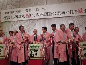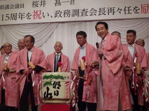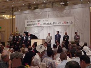17時より『櫻井甚一 県議会議員在職15周年を祝い、政務調査会長再々任を励ます会』を酷暑の中、ワシントンホテルに330名を超える皆様から参加頂き、盛会裏に開催することができました。