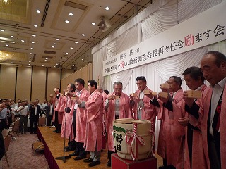 知事も当選祝いを兼ねて鏡割りに