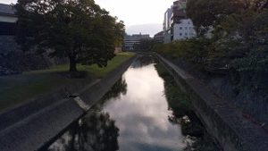 朝食前の爽やかな空気の中ホテル近くを散歩。片道15分くらいのところに熊本城入り口が。