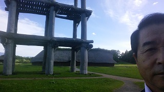 14時前頃特別史跡三内丸山遺跡に到着、北海道・北東北の縄文遺跡群の世界遺産登録に向けた取り組みについて説明を受けた後施設を視察。