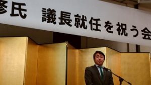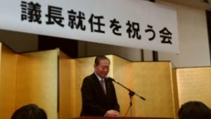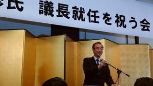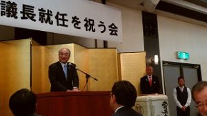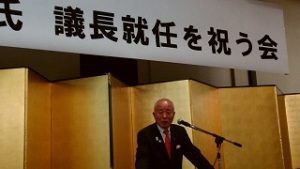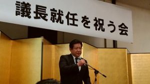 【議長祝賀会】 18時30分より五泉市内のホテルで開催の澤野 修氏の県議会議長就任を祝う会に出席。