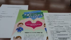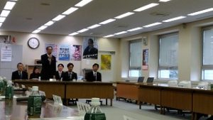 【障害福祉】 昼食休憩時に障害福祉議員連盟に出席。手話条例制定後の施策などについて説明と意見交換。平松障害福祉課長は手話を勉強中との事。
