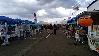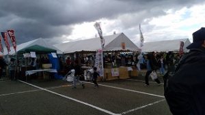 新発田から引き返し14時過ぎに分水商工会主催の軽トラ市にお邪魔しました。雨が降ったり止んだり時おり風が吹き肌寒い中、出展者やステージ上は皆さん頑張ってました。