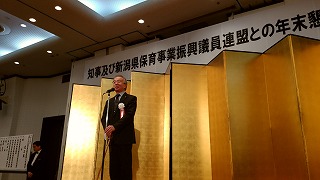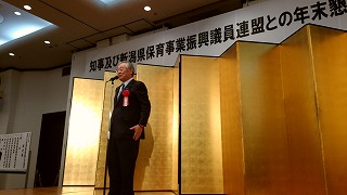 18時からは近くのホテルで開催の、知事及び県保育事業振興議員連盟との年末懇談会に出席。県下一円より私立の保育園・認定こども園の関係者が参加して、久しぶり(米山知事時代は休止)の開催に一同大いに盛り上がりました。
