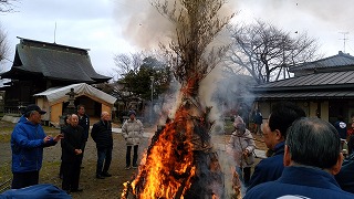 【賽の神】 13時、金山神社の賽の神に参加。同神社は住宅街の中にあり、火災の危険性を心配する声に配慮して以前よりかなり小さくなりましたが、それでもそれなりに炎を上げていました。