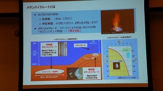 続いて、メタンハイドレート商業化への取り組みについての資源エネルギー庁の基調講演と、岩船沖油ガス田プロジェクトについて日本海海洋石油資源開発㈱よりの特別講演がありました。
