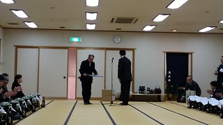 17時30分、燕市建設業組合新年会に出席。懇親会に先立ち鈴木市長から組合に昨年放送されたテレビドラマ下町ロケット撮影に対する協力への感謝状が贈られました。