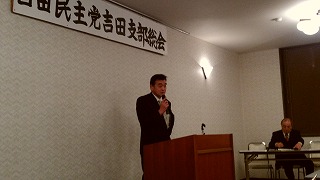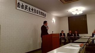 18時、自民党吉田支部総会に出席。塚田県連会長細田代議士も出席され、ここ2・3日マスコミを賑わしている鷲尾代議士の自民党入党?案件に触れないわけにもいかず、それぞれの立場で話されましたが、自分は「細田代議士は守る鷲尾氏は活かす」方向でいるとの思いを述べました。