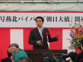 10時、国道289号燕北バイパス『朝日大橋』開通記念式典に出席。多くの関係機関や関係者に近隣住民が参加して盛大に挙行されました。