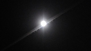 星も月(飛行機雲と重なる)もきれいな夜でした