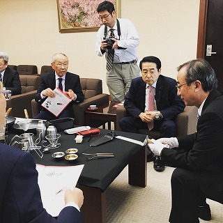 14時30分、燕・ジャパンインダストリアルデザインコンクール優秀賞受賞作品とその企業各社の知事表敬訪問に同行。