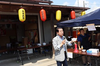 12時、小池自治会の納涼祭にお招き頂きました。毎年アトラクションや屋台のメニューに工夫が凝らされ、子供から高齢者まで大勢の住民が参加され夕方まで賑わいました。