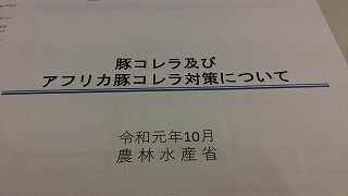10時より、農林水産委員会に出席し、議事の前に農林水産省より豚コレラについての講演があり、その後群馬県や埼玉県から積極的な国の対策を求める意見が出されました。