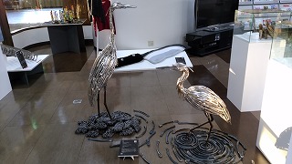 普段はプレスした後の抜き屑などの廃棄されるスクラップを利用して、動物や鳥などこれらの作品にはモノづくりの技を生かした遊び心が満載で大いに楽しめます。
