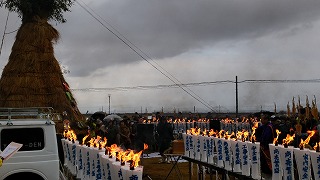 あいにくの強い雨に関係者と地域住民の足も戸惑いがちでしたが、神事の後はしっかりと点火しました。