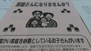 10時の党議に先立ち政務調査が行われ、里親制度について県児童家庭課からの説明や、県里親会から実態の報告がありました。温かい家庭を必要としている子供たちが増えているのに比して里親が少ないとの事で、里親への理解を広めていくことが求められます。