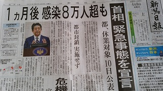 スーパームーンを見て一種の感動に浸りながら帰宅したら、安倍総理による7都府県への緊急事態宣言発令記者会見が各放送局同時に放映されていましたが、記者の質問レベルの低さに情けなくなりました。