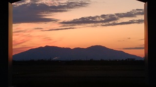 お天気も良かったので夕焼けに浮かぶ弥彦山もきれいです。